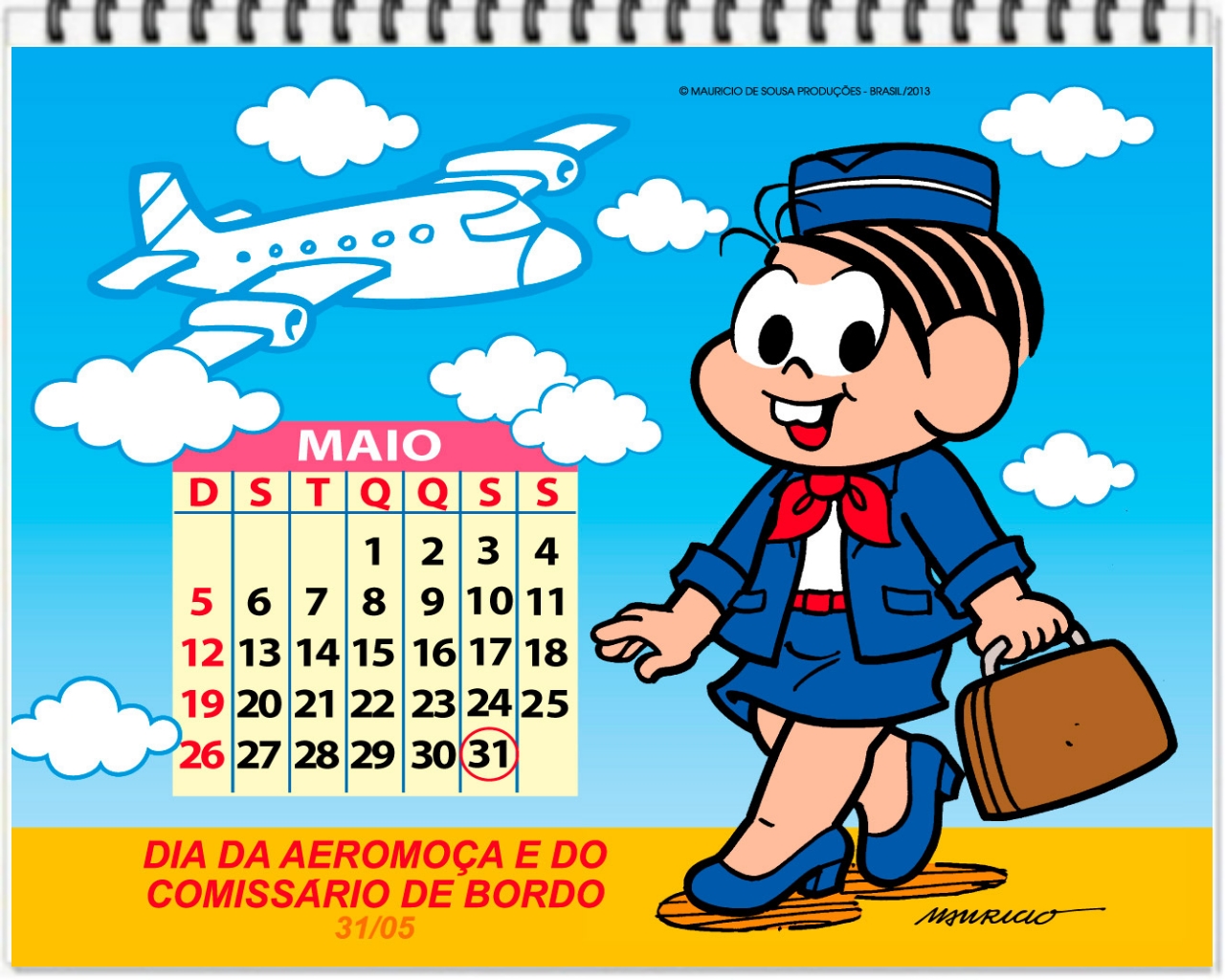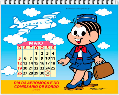 CALENDÁRIOS - DATAS COMEMORATIVAS - COMO A TURMA DA MÔNICA - MAIO 2013.